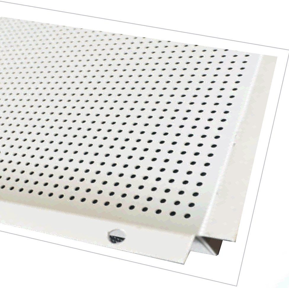 Perforated tile are power-coated , produced from high Quality aluminum or hot dip galvanized steel offering the Excellent corrosion protection infill 0.40 mm high quality Glass fiber acoustic fleece.